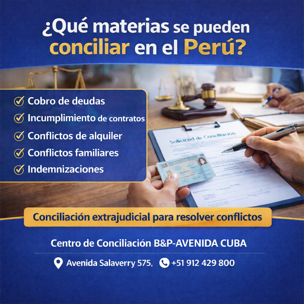 En el Perú, la ley establece que la conciliación puede aplicarse a diversas materias civiles y familiares, siempre que se trate de derechos disponibles, es decir, derechos sobre los cuales las partes pueden llegar a un acuerdo.
